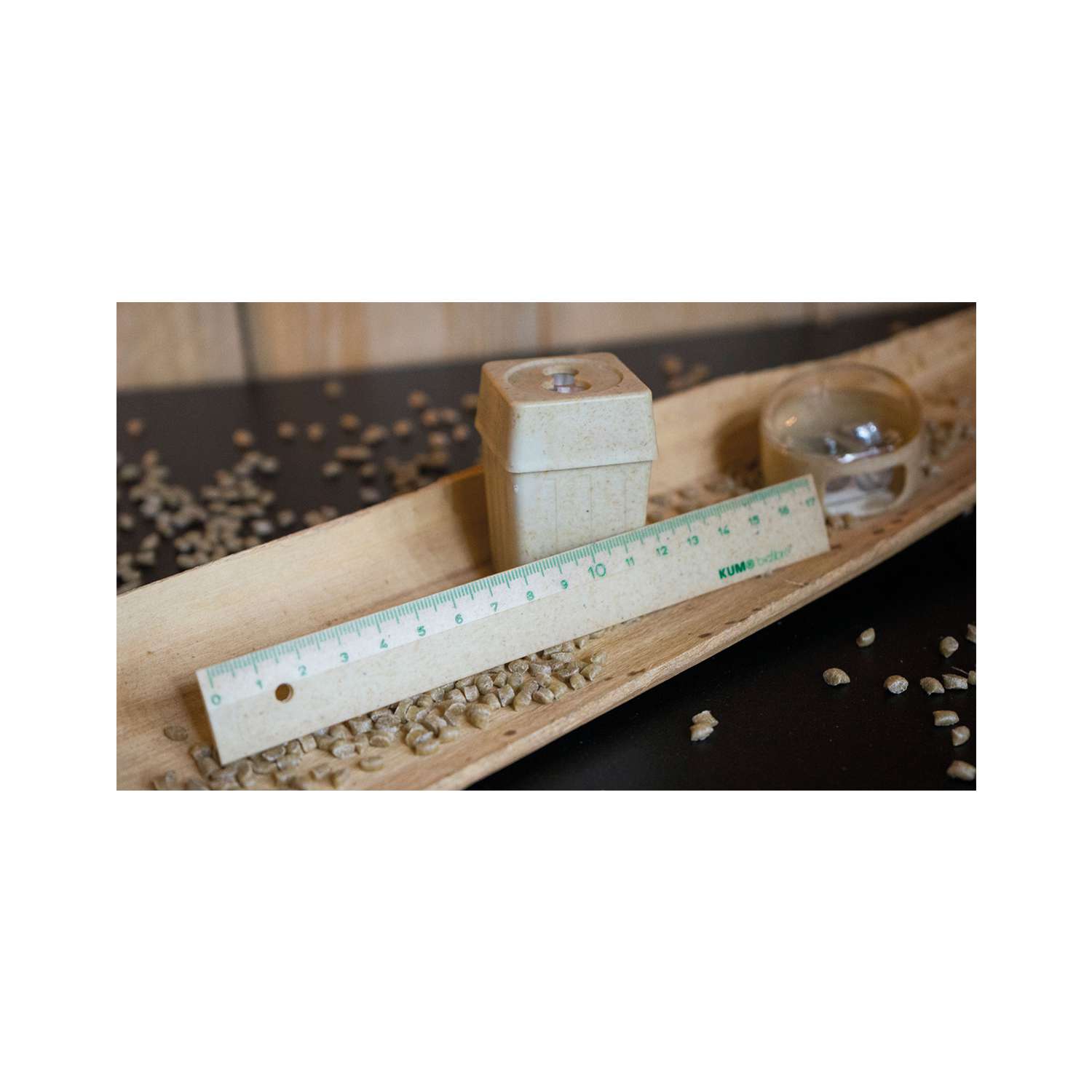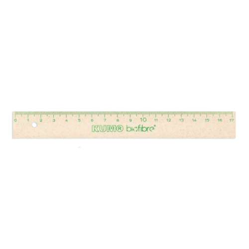 Das KUM® Biofibre® Lineal ist nachhaltig, präzise und robust. Ideal für Schule, Studium und Büro. Es besteht zu 97 % aus dem biobasierten Kunststoff Biofibre® Silva, ist biologisch abbaubar und DIN CERTO zertifiziert. Die heißgeprägte Skala bis 17 cm ist besonders langlebig, die abgeflachte Kante ermöglicht exaktes Zeichnen. Ein integriertes Loch erleichtert das Abheften oder Aufhängen. Durch seine kompakte Größe passt es problemlos in jede Federtasche oder Schublade.