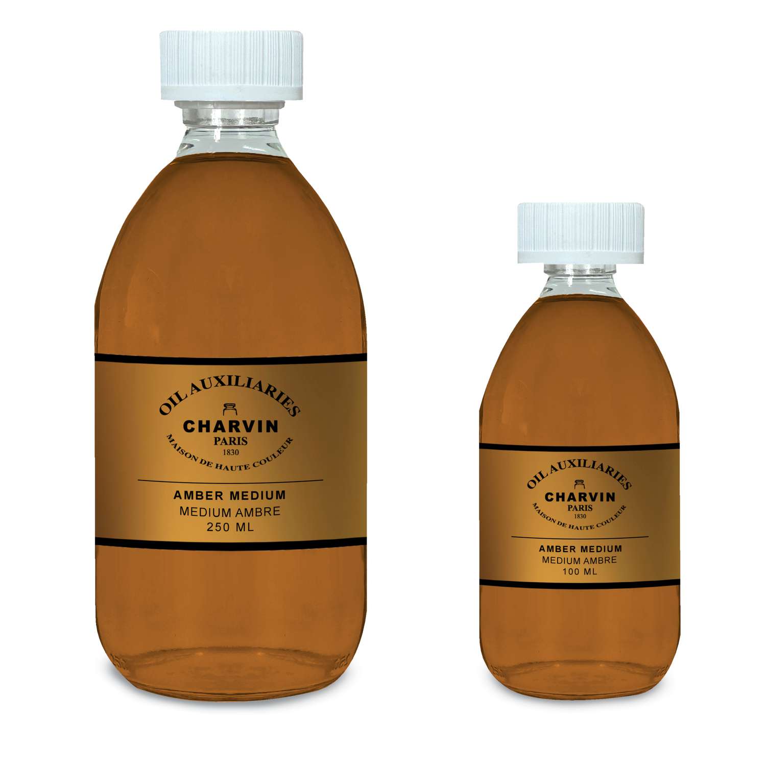 Das CHARVIN Bernsteinfarbenes Medium ist ein vielseitiges Zusatzmittel für Ölmalerei, das als hochglänzender Firnis oder zum Mischen mit Farben verwendet werden kann. Seine leicht bernsteinfarbene Tönung verleiht den Werken subtile Wärme, vertieft die Farbtöne und sorgt für eine leuchtende Wirkung. Das Medium trocknet schnell, ideal für die Verarbeitung der letzten Farbschichten, und verbessert die Oberflächenqualität sowie die Brillanz der Farben. Durch seine hohe Fließfähigkeit lassen sich Lasuren und Retuschen leicht ausführen, ohne Farbintensität oder Transparenz zu beeinträchtigen. Ob als Endfirnis oder direkt mit den Farben gemischt, es garantiert professionelle, glänzende und tiefgründige Ergebnisse.