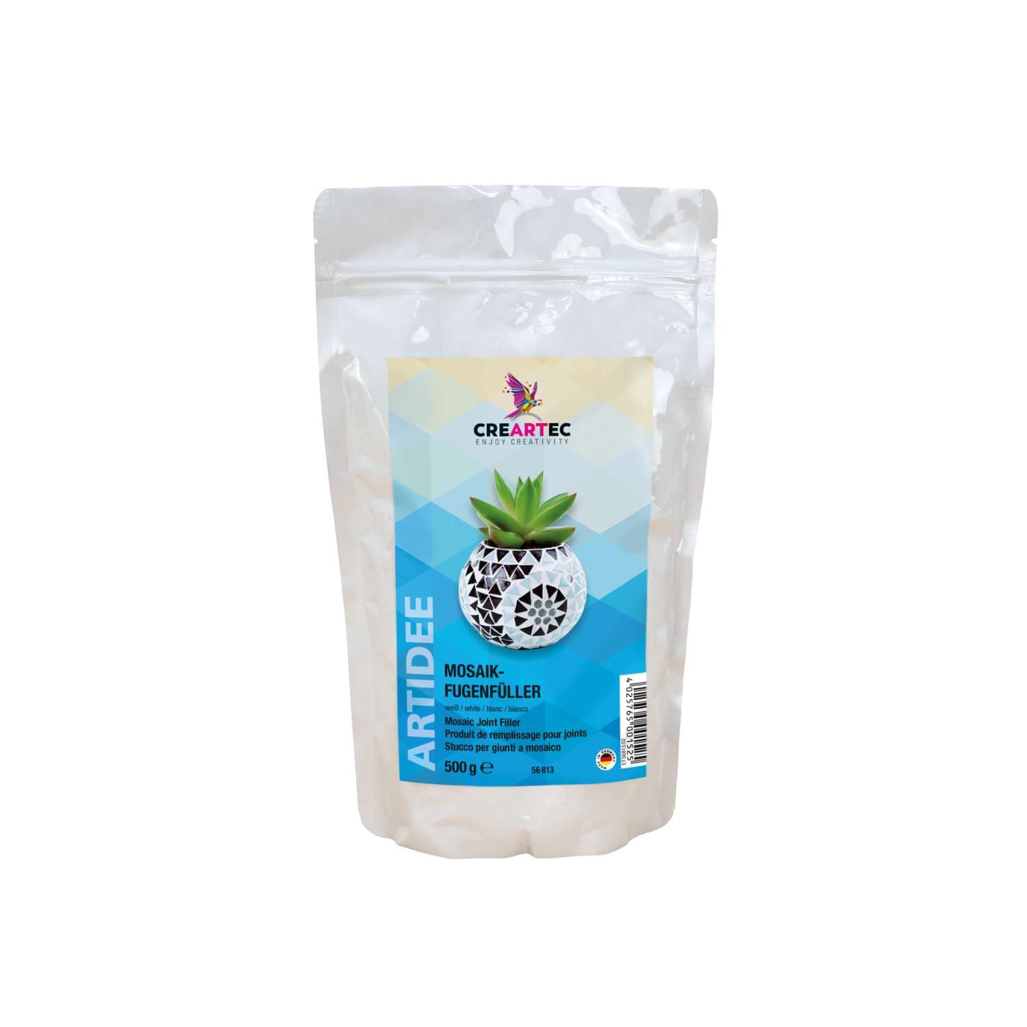 Der ARTIDEE® Mosaik-Fugenfüller besteht aus Polyurethan-Silikon und ist gebrauchsfertig in 500 g Dosen erhältlich. Er eignet sich für alle Untergründe und ermöglicht saubere, gleichmäßige Fugen zwischen Mosaiksteinen.