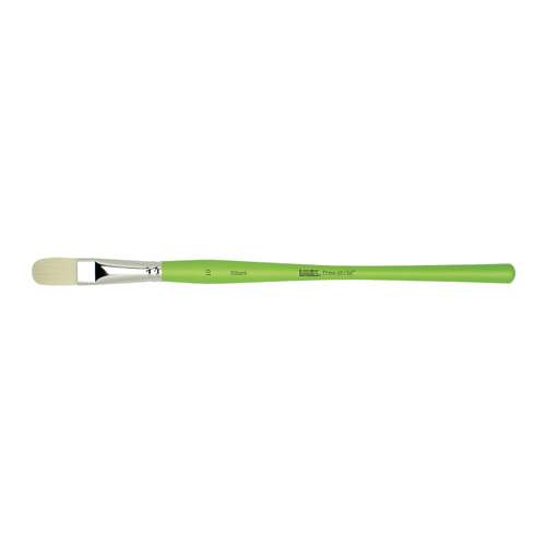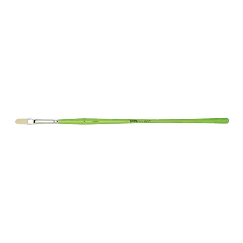 Die nahtlose, rostfreie Zwinge fixiert die Fasern sicher am langen, grün lackierten Holzstiel. Der ergonomische Stiel ist perfekt ausbalanciert: mit einer leichten Verdickung unterhalb der Zwinge, einer schlankeren Mitte und einem breiter auslaufenden Ende liegt er optimal in der Hand. Auch bei Führung am Stielende ist maximale Kontrolle gewährleistet. Praktisches Extra: Die Pinselgröße ist nicht nur seitlich, sondern auch am Stielende angegeben.