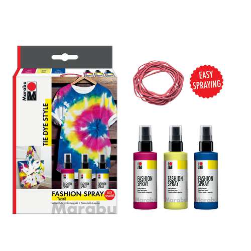Das MARABU Fashion Spray Trend-Set "Tie Dye Style" ist ideal für freies Sprühen, Schablonieren und viele weitere Techniken. Inhalt: 3 x Fashion Spray, 10 g Gummiringe , 1 x Anleitung. Mehr