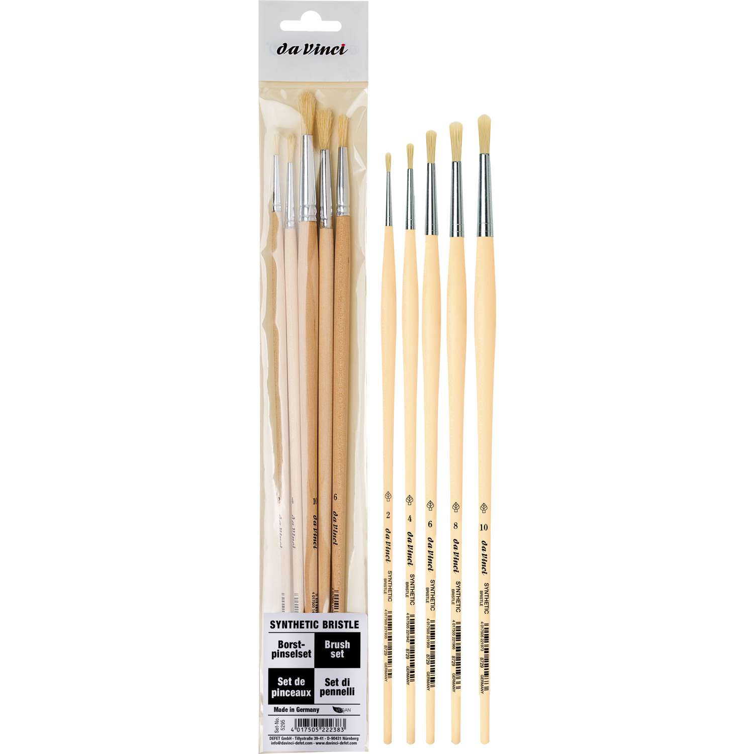 - 5-teiliges Rundpinselset in den Größen 2, 4, 6, 8 und 10