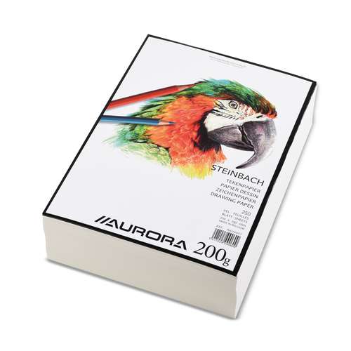 Das AURORA Steinbach Zeichenpapier ist leicht gekörnt und eignet sich ideal für alle Trockentechniken. Es wird in großen Packs angeboten und ist in verschiedenen Formaten und Grammaturen erhältlich – ideal für Schule und Workshop.