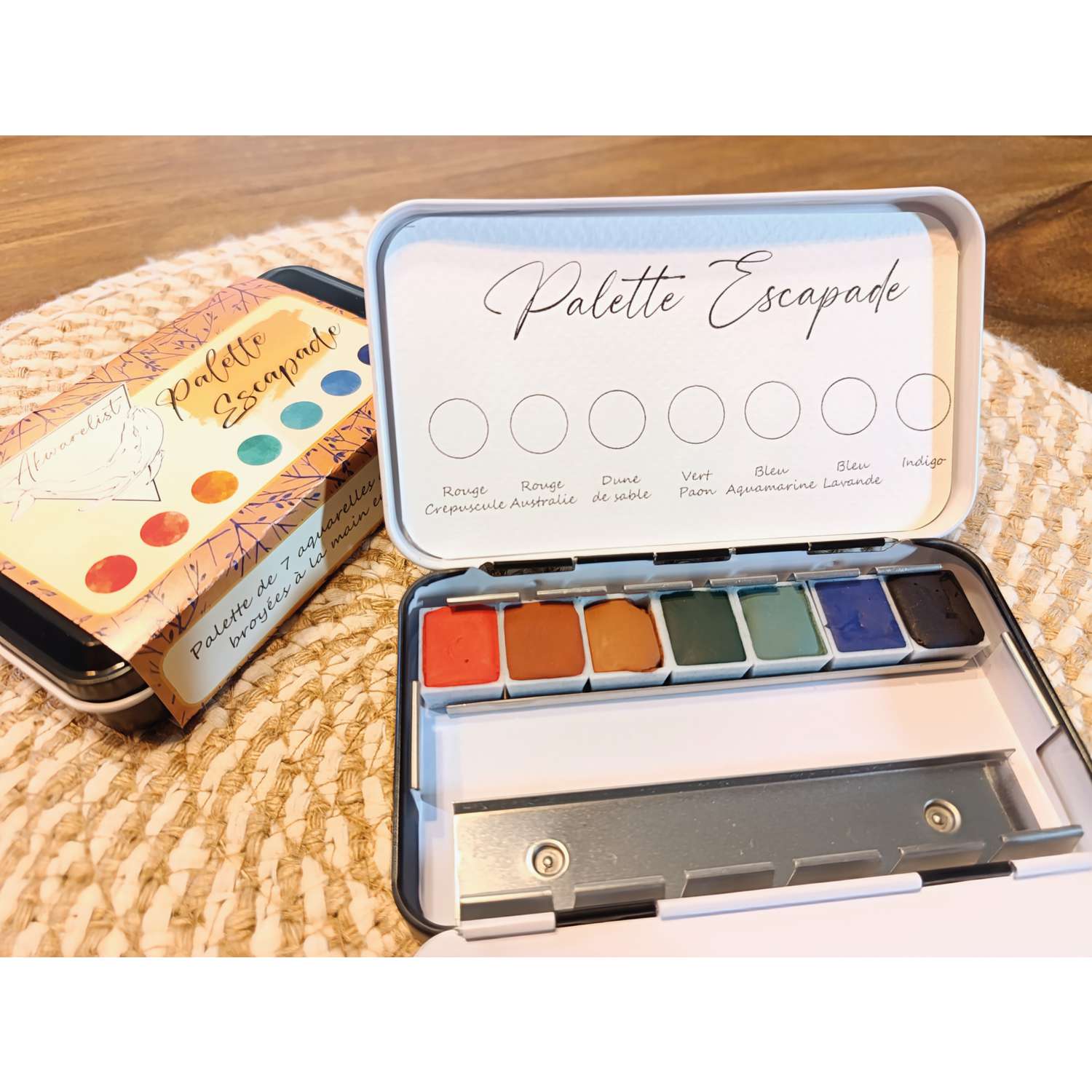 - Escapade (7 halbe Näpfchen): Sand Dune, Sunset, Australia, Indigo, Lavender, Aquamarine, Peacock Green