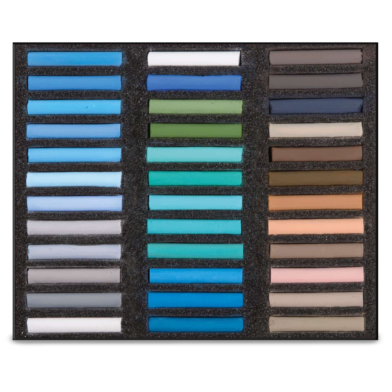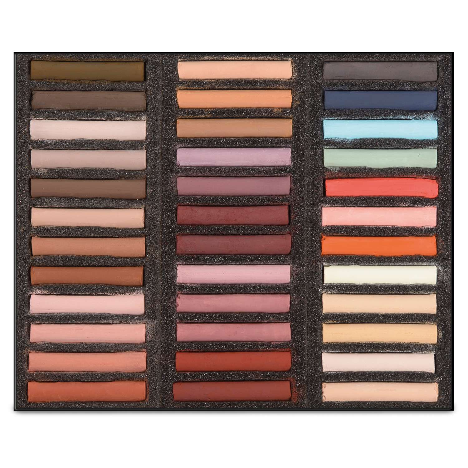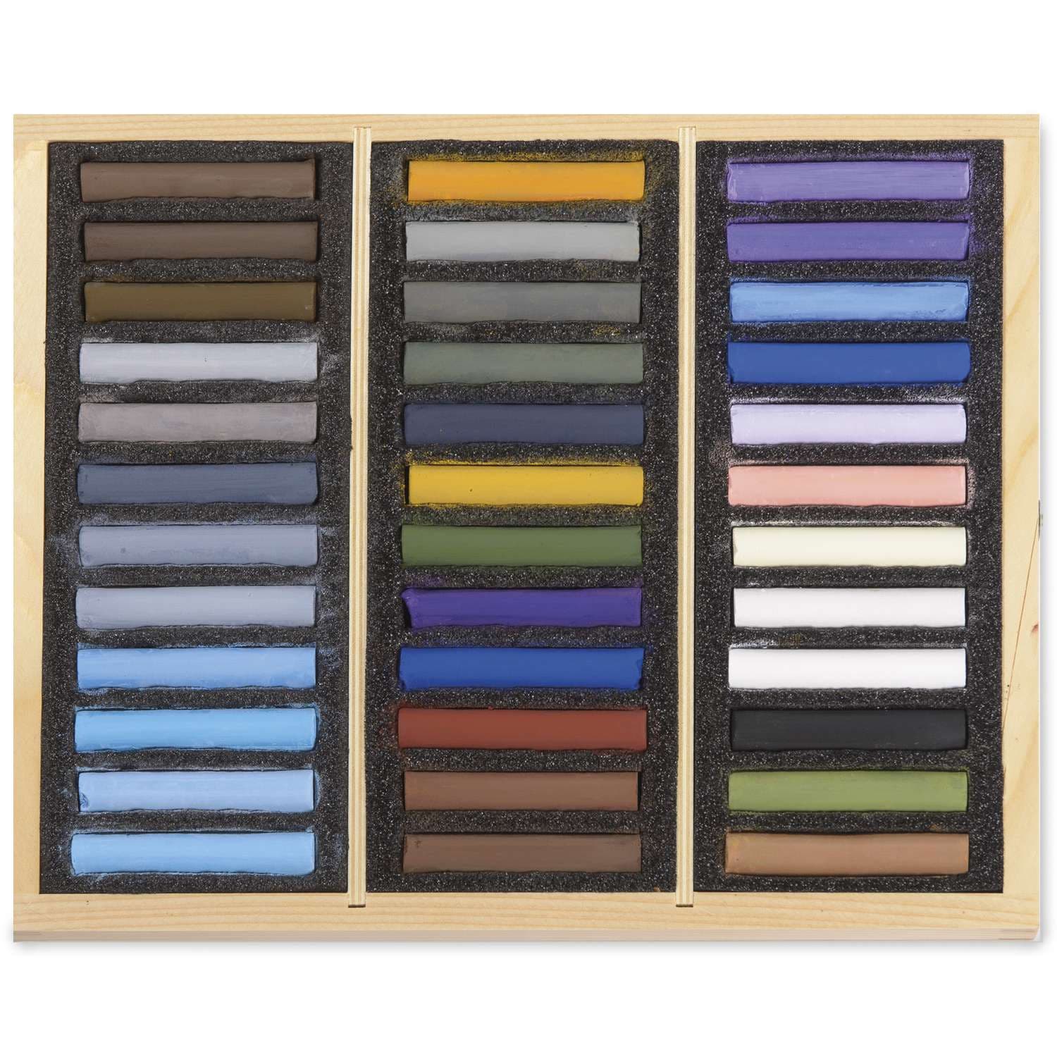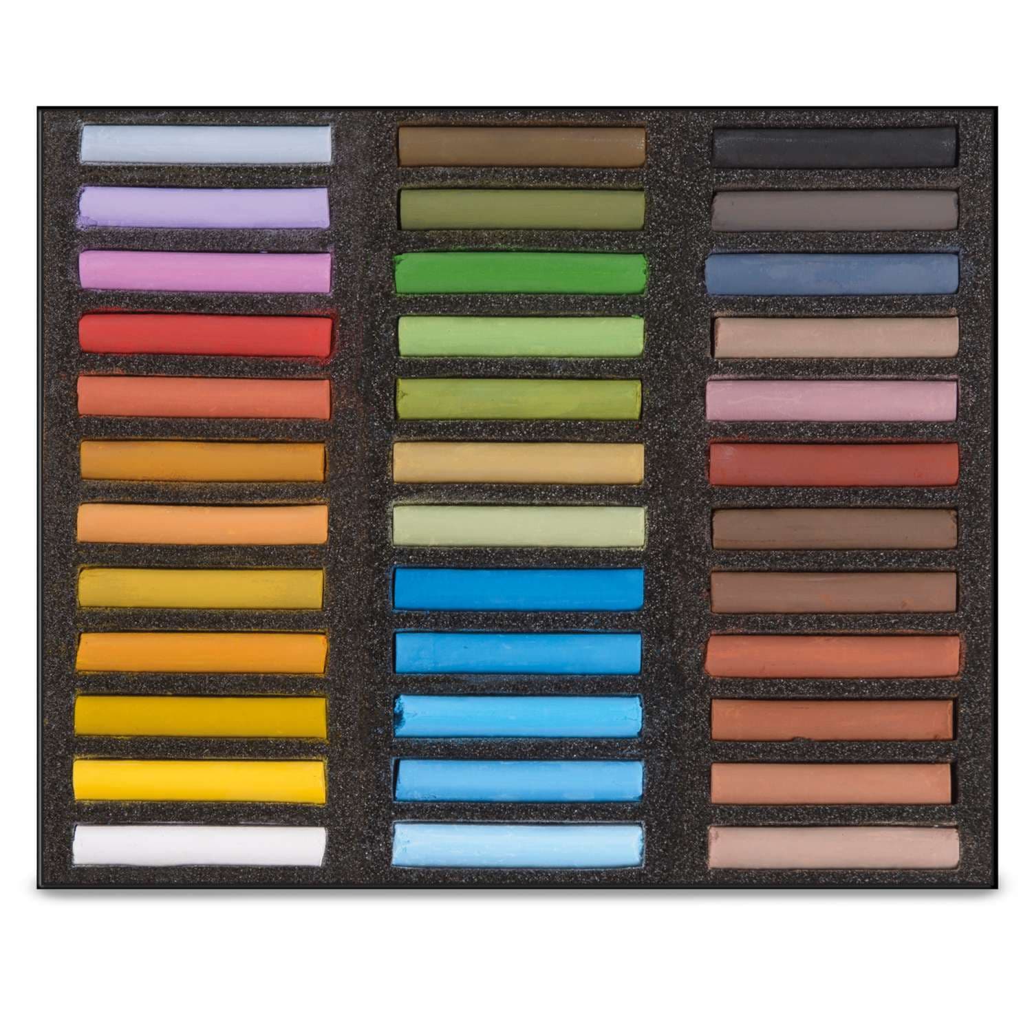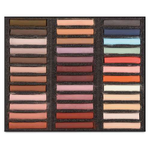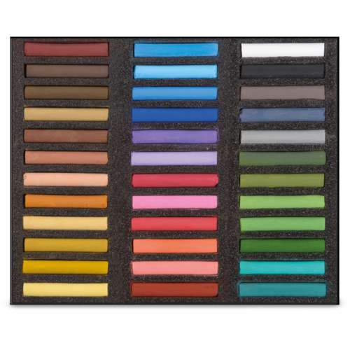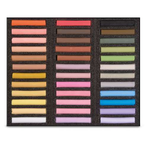 Auch die BLOCKX Pastell-36er-Sets sind aus reinen Pigmenten, die in kleinen Stiften vereint wurden – das sind die trockenen Pastellkreiden von BLOCKX, die weich aber nicht brüchig sind. Die hervorragende Qualität dieser Pastelle spiegelt sich zudem in einer hohen Deckkraft wieder, wodurch das Zeichnen auf allen Untergründen möglich ist. Ihre beste Qualität weisen sie allerdings auf speziell entwickeltem Papier auf, wie der Pastel Card, der PASTELMAT, dem Pastellblock Mi-Teintes, Art Spectrum oder dem Pastellblock Ingres.