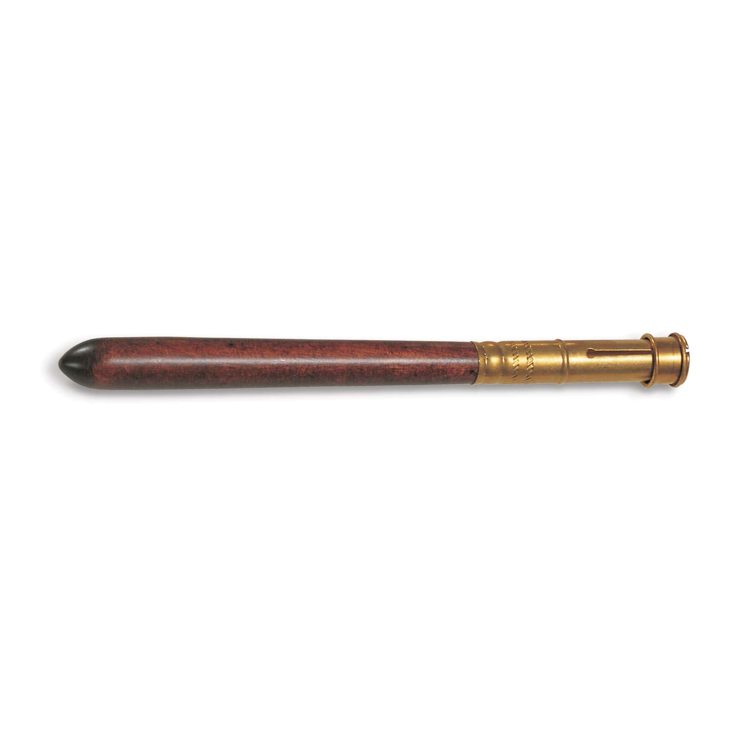 Aus Holz mit Nickel- bzw. Messinghülse und Klemmring, 115 mm. Für Blei- und Farbstifte normaler Stärke.