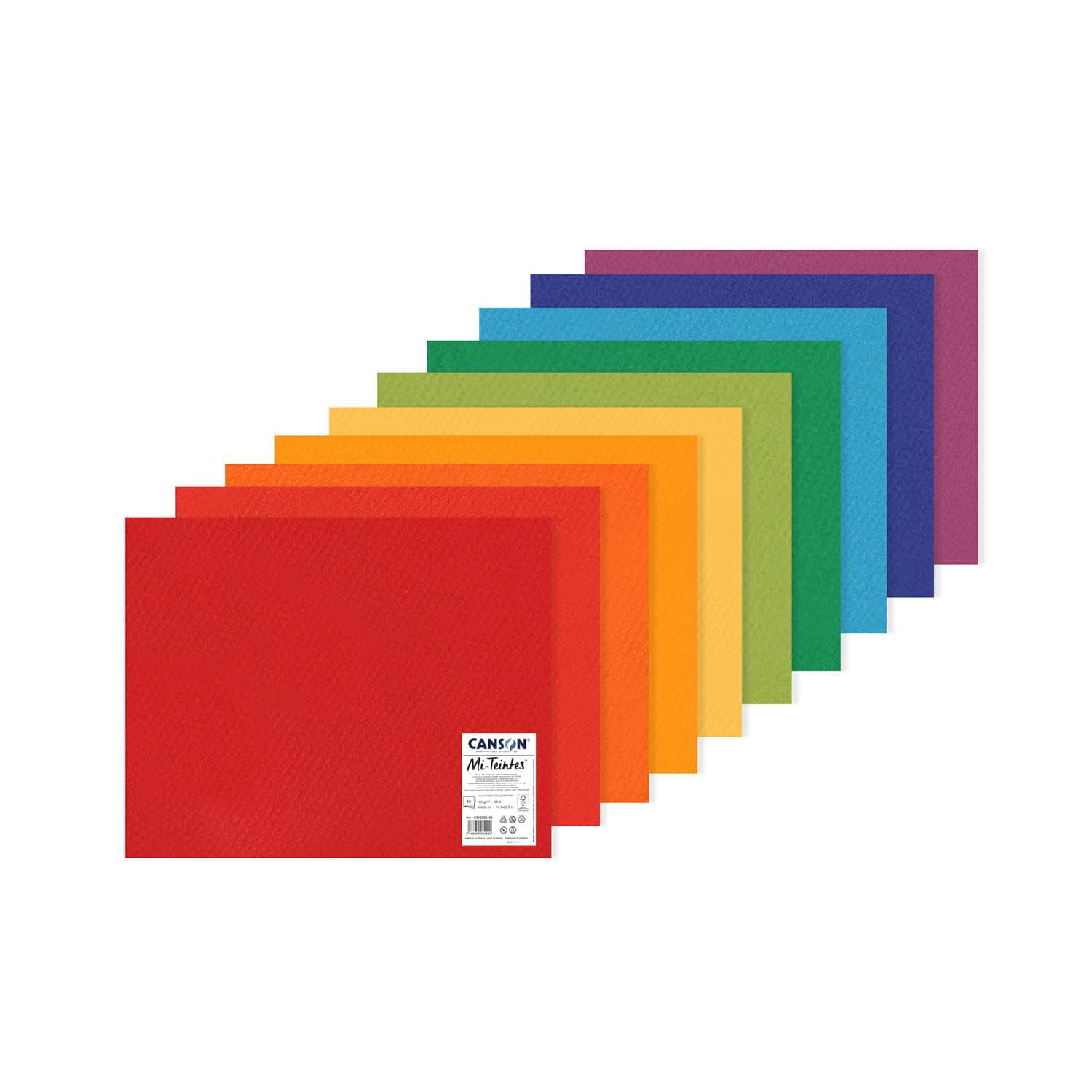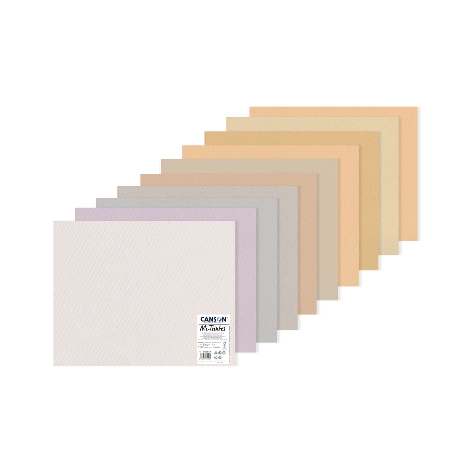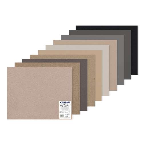 Diese CANSON® Mi-Teintes® Pastellpapier Sets enthalten 10 farblich abgestimmte Blätter beidseitig verwendbaren Papiers: eine feine Körnung auf der einen Seite und eine wabenartige Struktur auf der anderen.