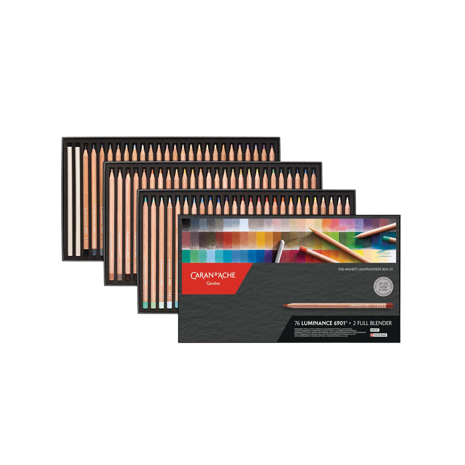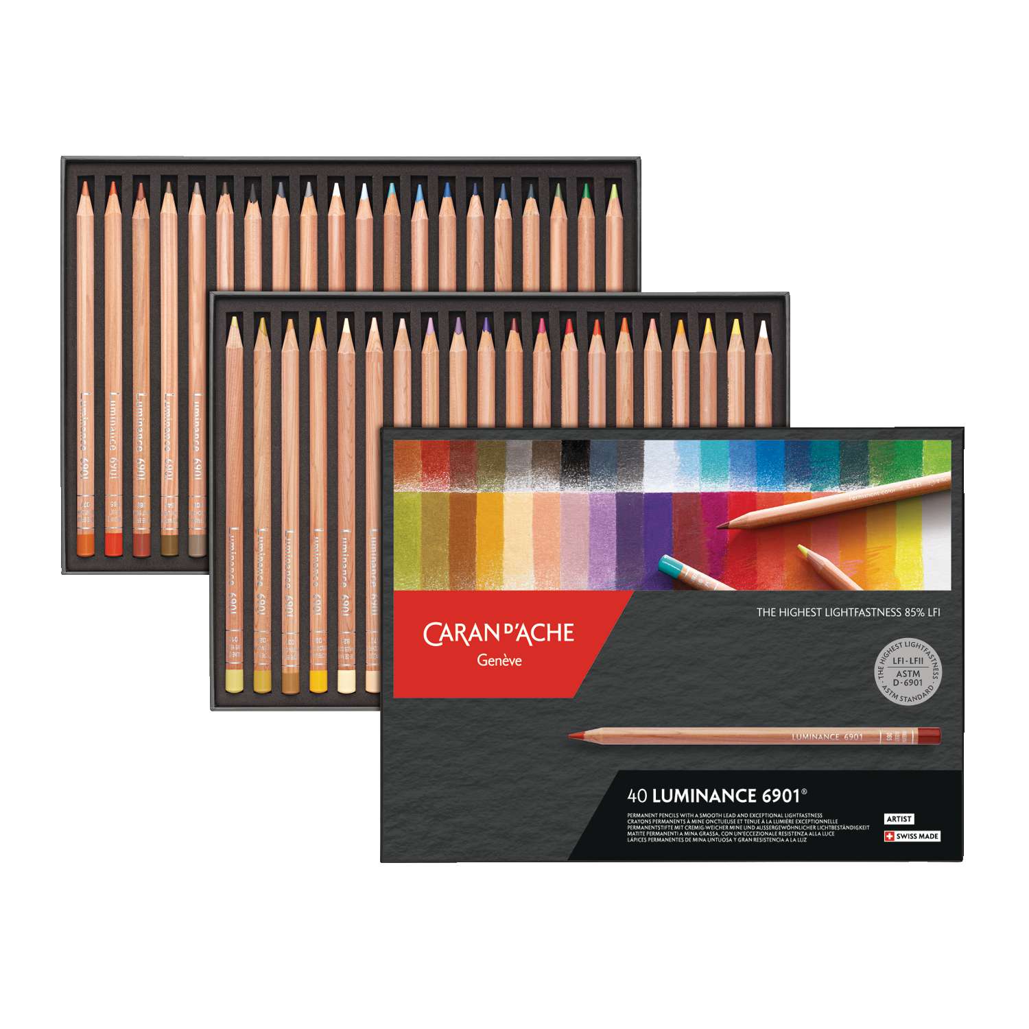 Die CARAN D'ACHE Farbstifte-Sets Luminance 6901 Standardsortimente sind in verschiedenen Ausführungen erhältlich.
