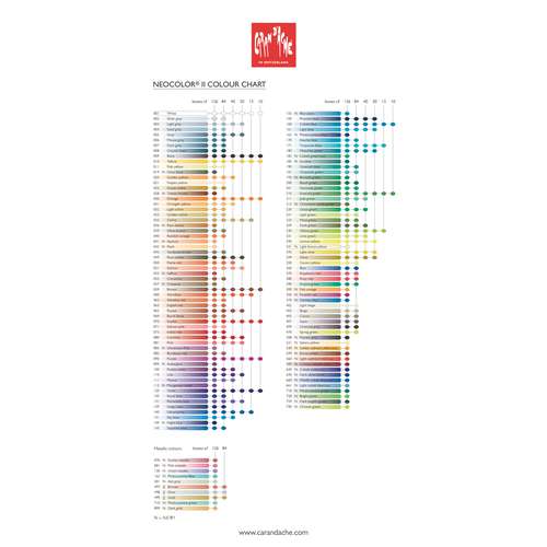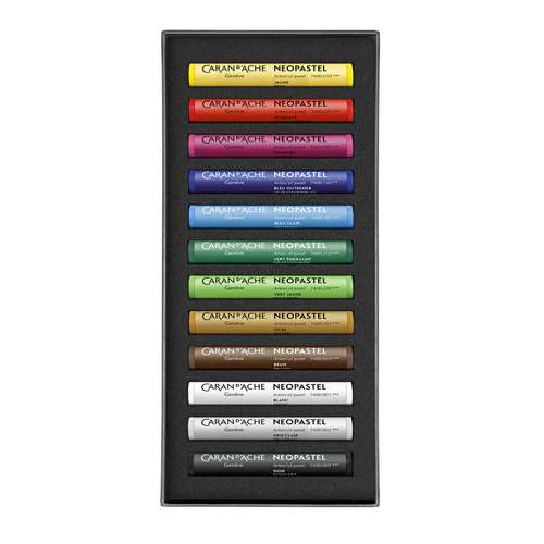 CARAN D'ACHE Neopastel Ölpastellkreiden-Sets sind hochwertige Pastellkreiden. Sie sind weich und geschmeidig, haben eine große Deckkraft, sind lichtecht, stauben nicht und brauchen kein Fixiermittel. Die CARAN D'ACHE Neopastel Ölpastellkreiden sind von außerordentlicher Leuchtkraft und lassen sich unbegrenzt zu feinsten Nuancen miteinander mischen. Dank dem besonderen Bindemittel der CARAN D'ACHE Neopastel Ölpastellkreiden kann der Farbauftrag mit den Fingerspitzen differenziert verteilt und verrieben werden. CARAN D'ACHE Neopastel Ölpastellkreiden eignen sich sowohl für die lockere Skizze als auch für das ausgearbeitete Bild, in freistehendem Schraffurstrich wie in geschlossener, nuanciert gemischter Fläche. Die Pastellkreide ist zylindrisch, Länge 6,8 cm, d 11 mm. Die