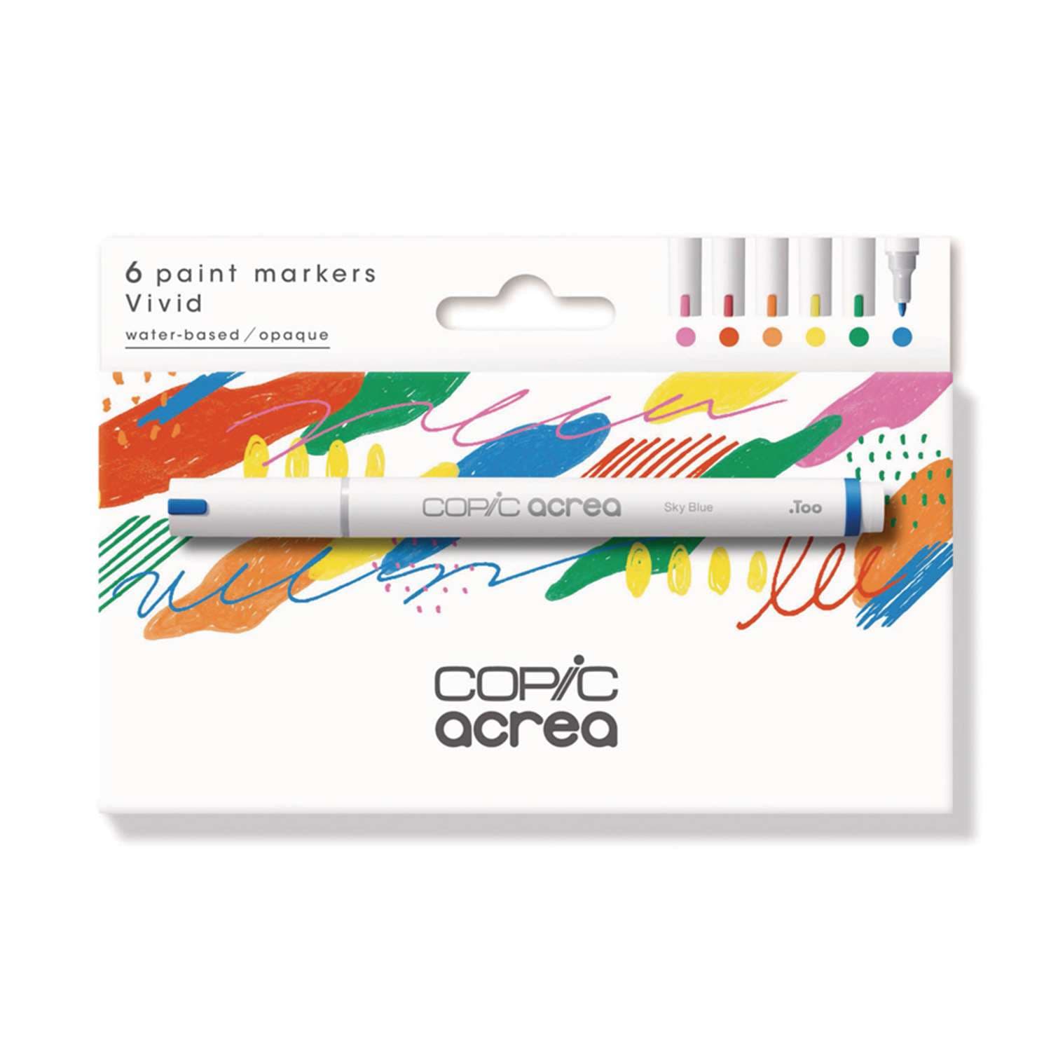 Das COPIC® acrea Marker „Vivid“ 6er-Set enthält folgende Farbtöne