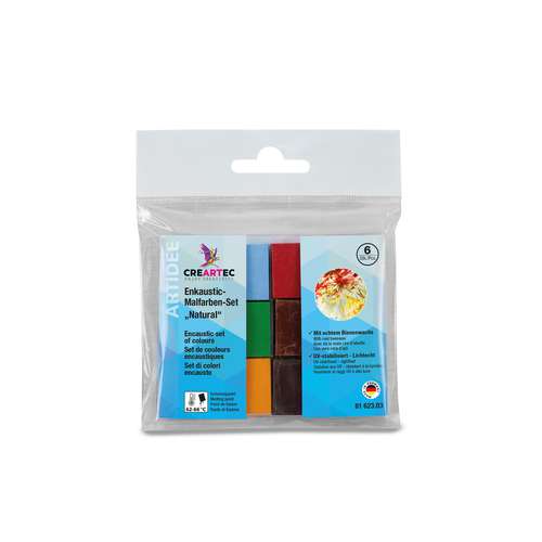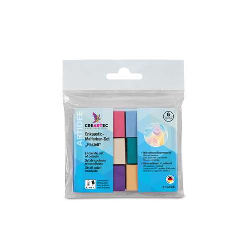 Die CREARTEC Enkaustic Malfarben Sets bestehen aus farbintensiven Wachsblöcken, die sich durch Erwärmen verflüssigen und sowohl für flächige Arbeiten als auch für feine Strukturen eignen. Die Farben besitzen eine stabile Konsistenz und ermöglichen klare, kräftige Farbaufträge. Die Sets sind in verschiedenen thematischen Zusammenstellungen erhältlich und bieten geeignete Farbreihen für Einsteiger und Fortgeschrittene. Der Farbauftrag ist klar, kräftig und gut kontrollierbar. Die Malblöcke besitzen eine stabile Konsistenz und eignen sich für kreative Experimente wie auch für traditionelle Enkaustiktechniken.
