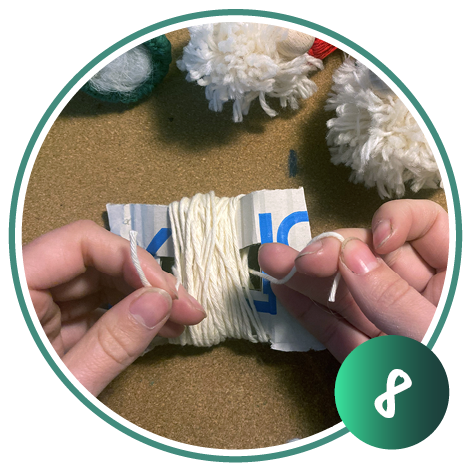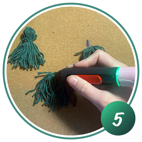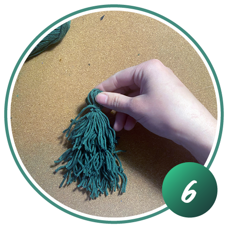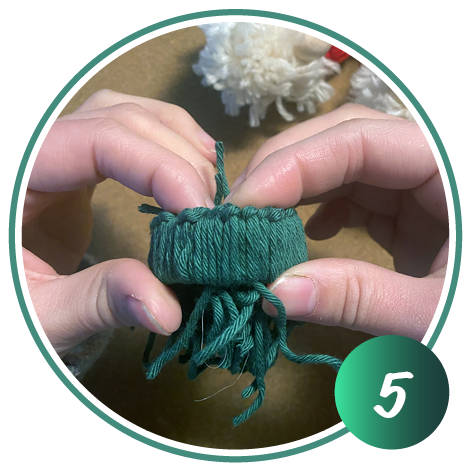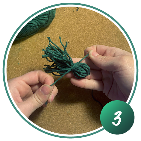 Knoten Sie die aufgewickelte Wolle oben zusammen und schneiden Sie diese unten auf. Wiederholen Sie Schritt 1 und 2 dreimal.