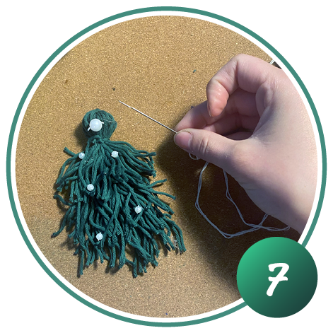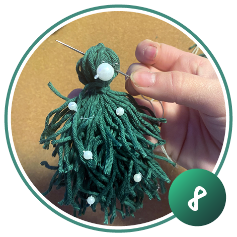 Dekorieren Sie den Tannenbaum mit Perlen oder kleinen Sternen.