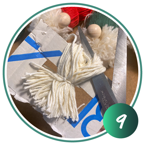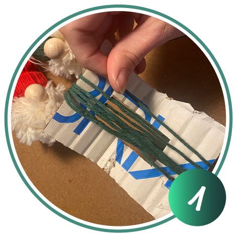 Für den Wichtelbart wickeln Sie die Wolle um ein Stück Pappe (ca. 11 cm x 7 cm + Loch) auf. Wickeln Sie die Wolle mehrfach um die Pappe. Je mehr Wolle, je dichter wird der Bart.