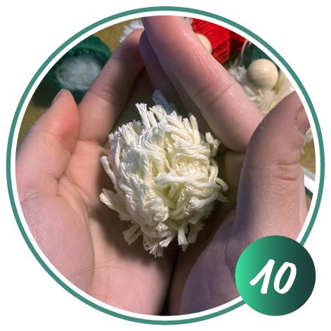 Optional können überstehende Wollfäden abgeschnitten und das Wollknäuel in Form gebracht werden.