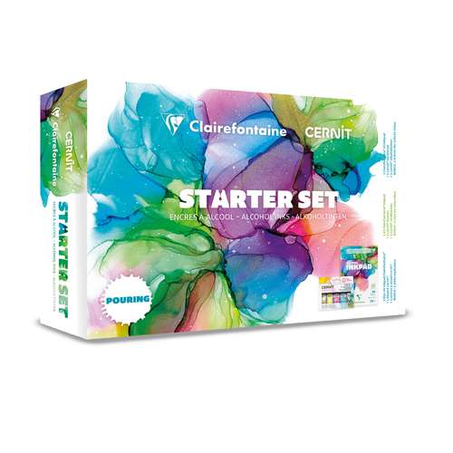 Das ALCOHOL INKS Starter-Set ist eine Zusammenarbeit der Marken Clairefontaine und CERNIT®. Es enthält alles, was Sie benötigen, und eignet sich perfekt als Geschenk, um Alkohol-Tinten zu entdecken!