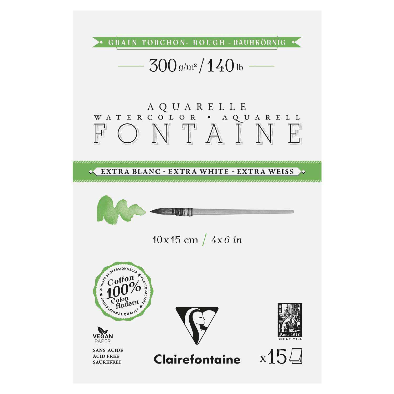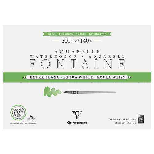 Der Clairefontaine FONTAINE Aquarellblock Extraweiß ist ein Aquarellpapier der Spitzenklasse – gefertigt zu 100 % aus reinster Baumwolle und in traditioneller Herstellung. Die extraweiße Tönung bringt Ihre Farben brillant zur Geltung und macht feinste Nuancen sichtbar.