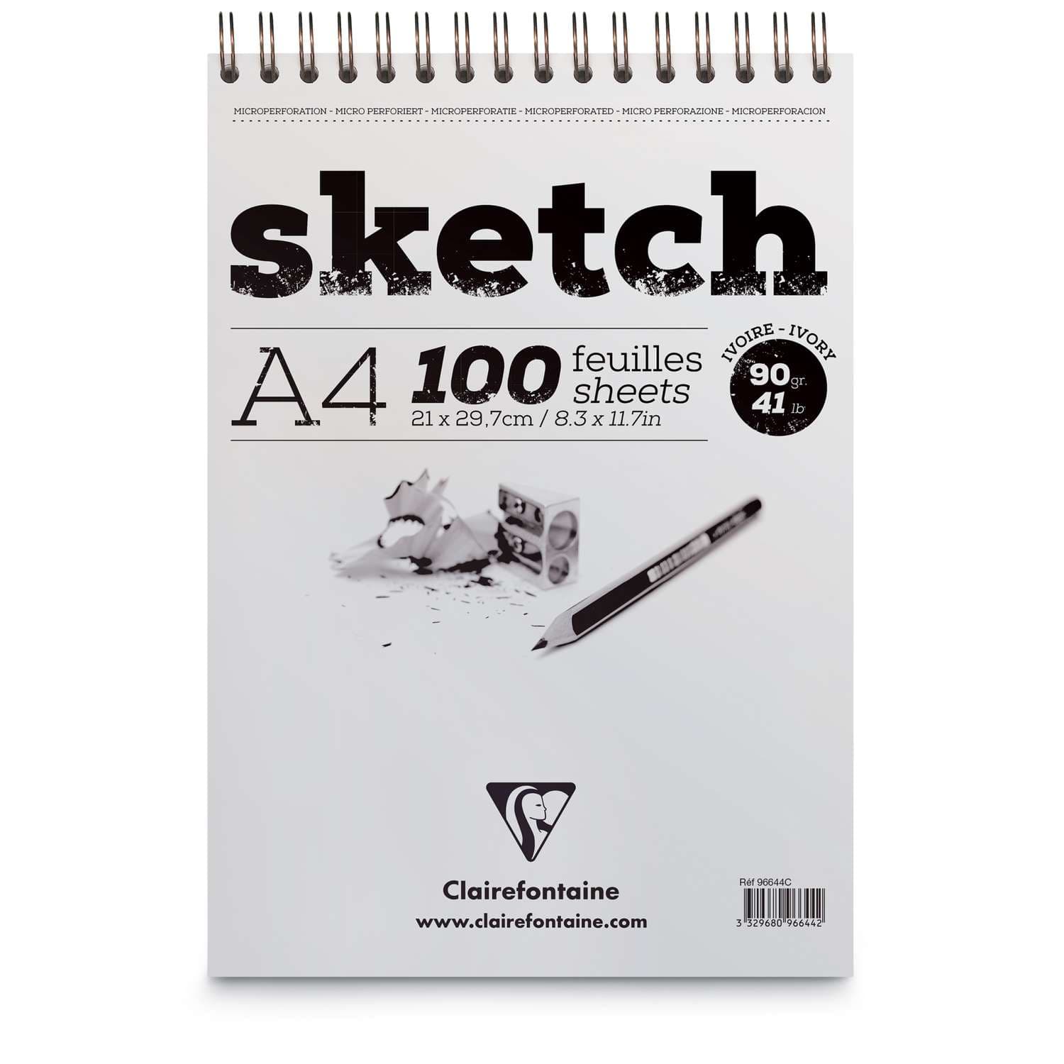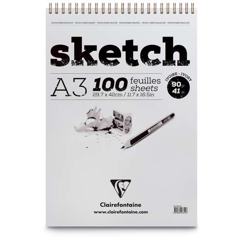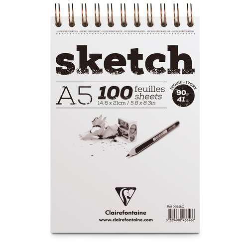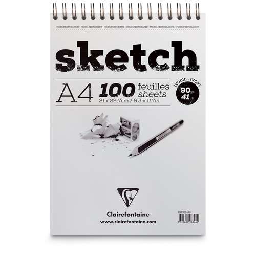 Der Clairefontaine Skizzenblock "Sketch" ist ein Spiralblock mit Mikroperforierung. Das enthaltene bauschige Zeichenpapier besitzt eine feine regelmäßige Körnung und eignet sich daher besonders für Trockentechniken. Ein Papier, das ein rasches Zeichnen, Wischen oder Radieren zulässt, ohne dabei befürchten zu müssen, dass es durch zu festen Druck beschädigt wird.