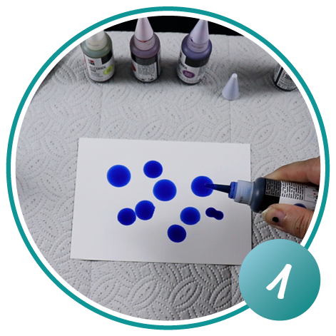 Für diese Technik ist spezielles, synthetisches Papier nötig, welches die Tinte nicht aufsaugt und auf der Oberfläche trocknen lässt. Die Plastikspitzen der Alcohol Ink-Fläschchen werden vorsichtig mit einer Schere abgeschnitten und gut geschüttelt.