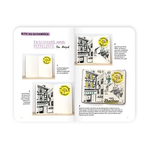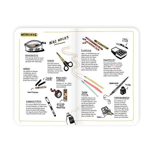 llustration, Handlettering und Schabernack zum Mitnehmen. Martina Friedli zeigt, wie Sie mit einfachen Mitteln unterwegs skizzieren und den Alltag kreativ dokumentieren. Es bietet Übungen, Tipps und Inspiration für Ihre Skizzen. Mehr
