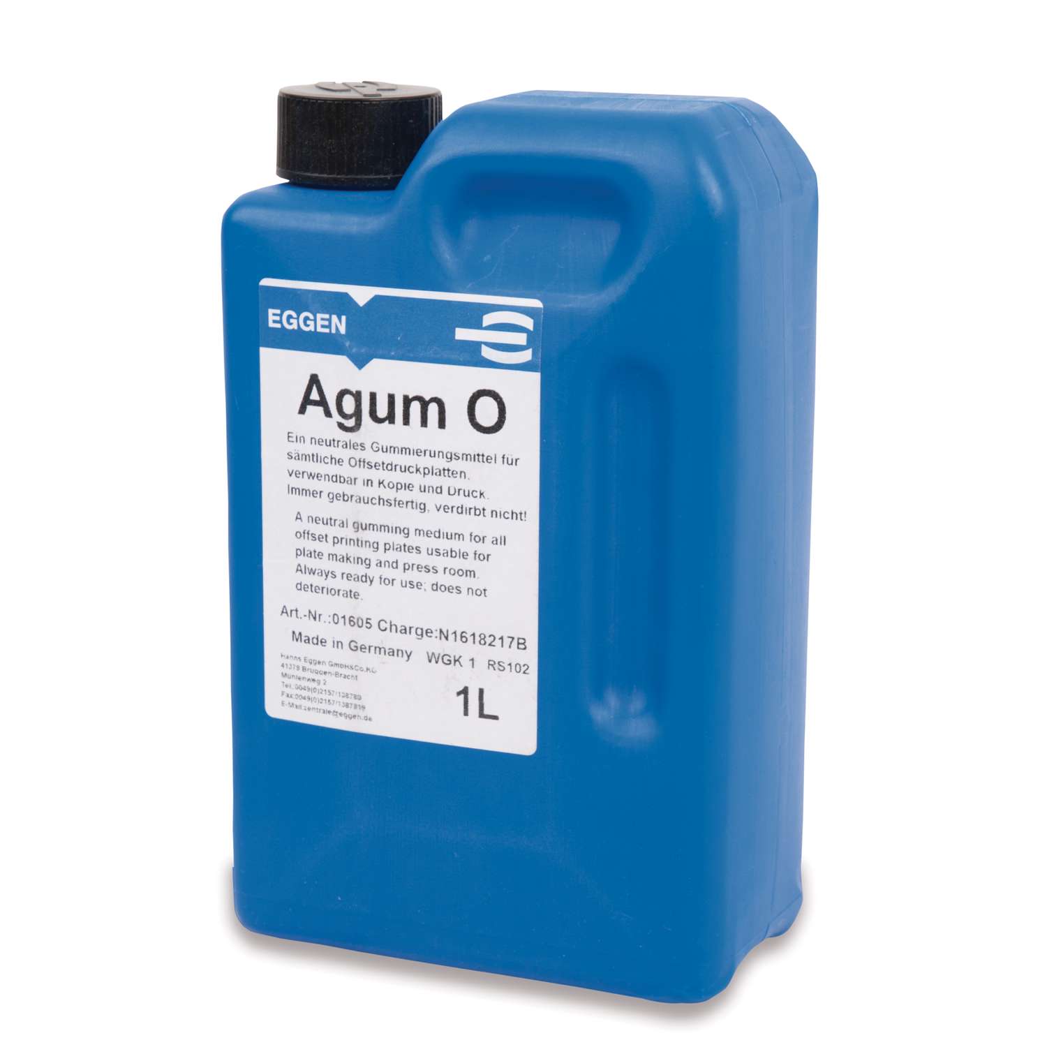 Neutrales Gummierungsmittel für das Gummieren von Litho-Aluminiumplatten (Offsetplatten) nach Beendigung des Farbdrucks. Inhalt 1 Liter.