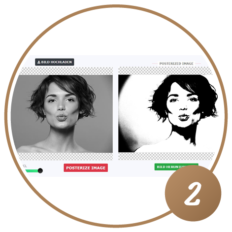 - Danach öffnen Sie wieder den Link und laden das Schwarzweissfoto hoch, schieben den Regler ganz nach rechts und lassen Sie das Bild Posterisieren.