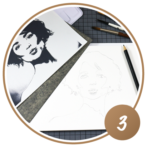 Um das Motiv auf Ihr Aquarellpapier übertragen zu können, nutzen Sie ein Graphitpapier und pausen die Linien ab – oder reiben Sie mit einem Bleistift über die komplette Rückseite des ausgedruckten Papiers und übertragen dann die Linien Ihres Bildes.