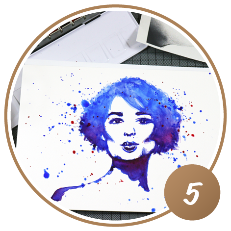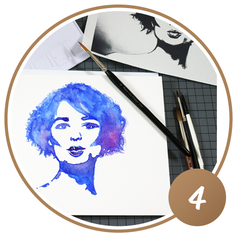 Nun kommt die Aquarellfarbe ins Spiel! Suchen Sie sich entweder eine Farbe aus, um einen monochromen Effekt zu erzielen oder nutzen Sie die ganze Palette und werden Sie bunt. Um dem Bild mehr Tiefe zu geben, werden Schatten mit mehr Farbe oder einem dunkleren Farbton stärker betont.
