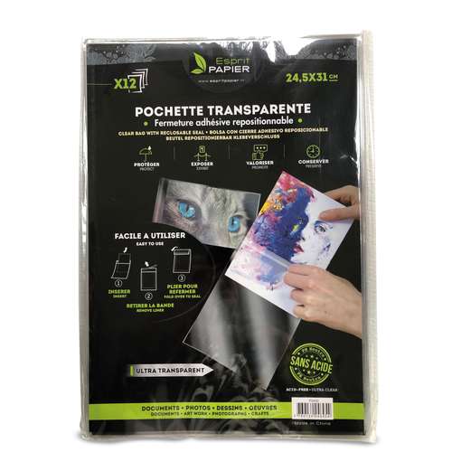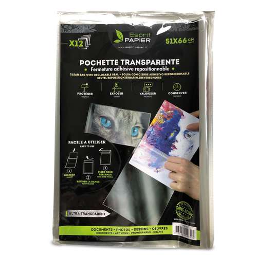 Die Esprit Transparenthüllen sind klare, wiederverschließbare Beutel, ideal zum Schützen, Präsentieren und Archivieren von Dokumenten, Kunstwerken und Fotos.