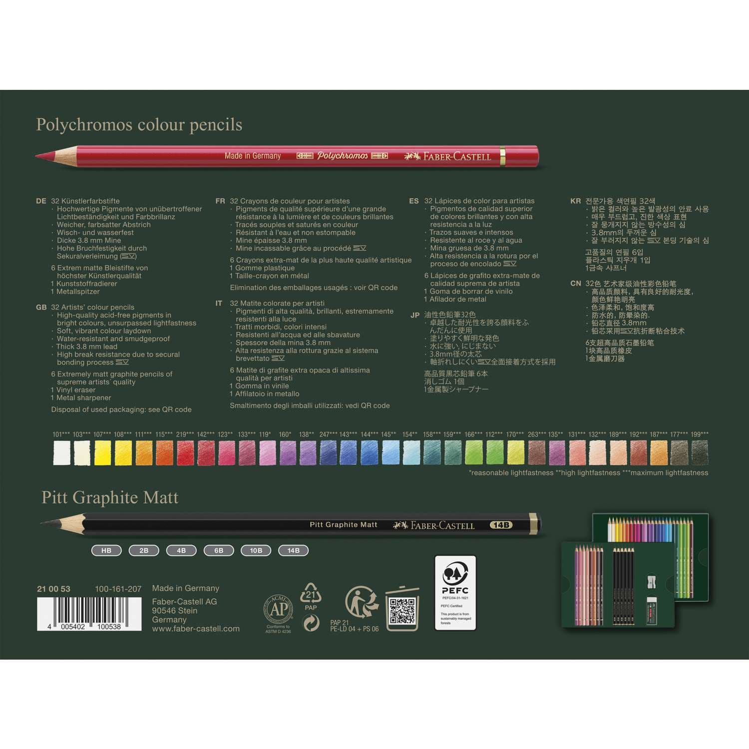 Die POLYCHROMOS & PITT Graphite Matt-Sets von FABER-CASTELL enthalten einzigartige Kombinationen von hochwertigen Farbstiften und erstklassigen Bleistiften.