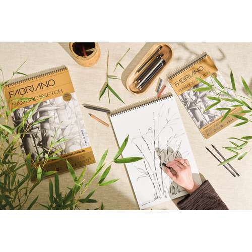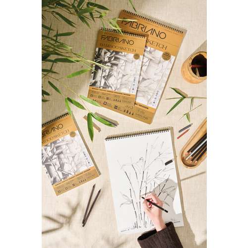 Der FABRIANO® Spiral-Skizzenblock BAMBOO SKETCH ist die ideale Wahl für Künstler, die Wert auf natürliche Materialien und vielseitige Einsatzmöglichkeiten legen. Mit einem Papieranteil von 90% Bambus und 10% Baumwolle verbindet er umweltfreundliche Herstellung mit hoher Qualität.