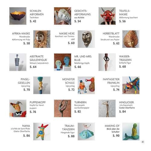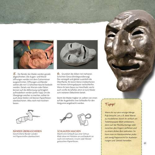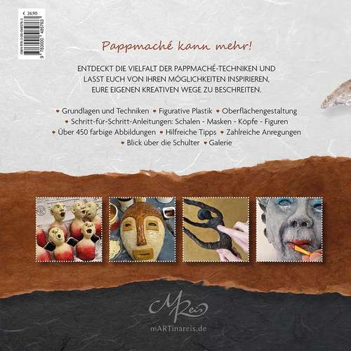Auf unterhaltsame und leicht verständliche Weise werden hier die Grundlagen der Pappmaché-Technik erklärt, die dann anhand vieler praktischer Beispiele (schwerpunktmäßig figurative Motive) erprobt werden können.