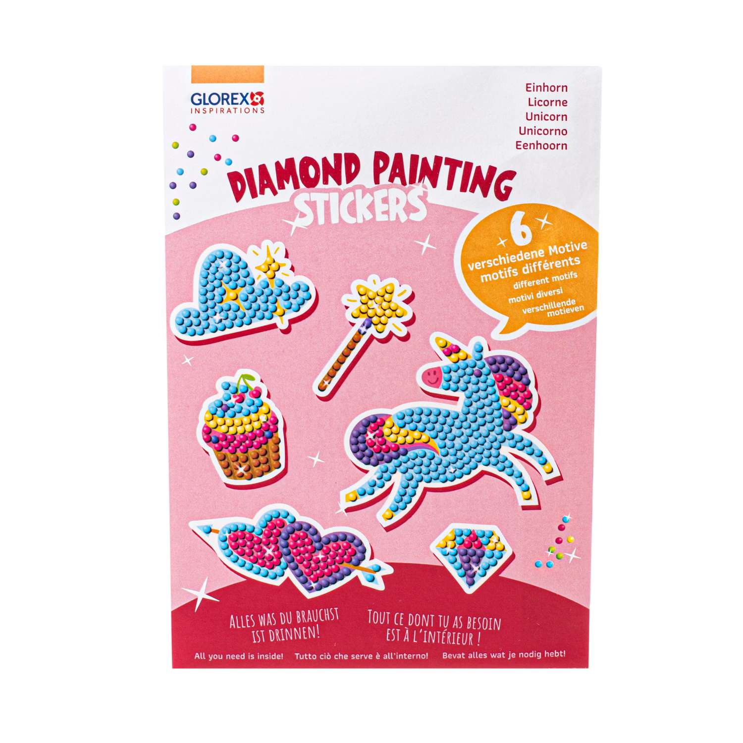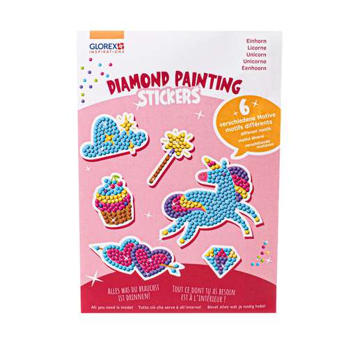 Mit den GLOREX Diamond Painting Sticker Sets können Kinder auf spielerische Weise eigene funkelnde Sticker gestalten – jedes Set enthält 6 verschiedene Motive zu einem bestimmten Thema. Diese Komplettsets bieten kreativen Bastelspaß für geschickte Kinderhände.