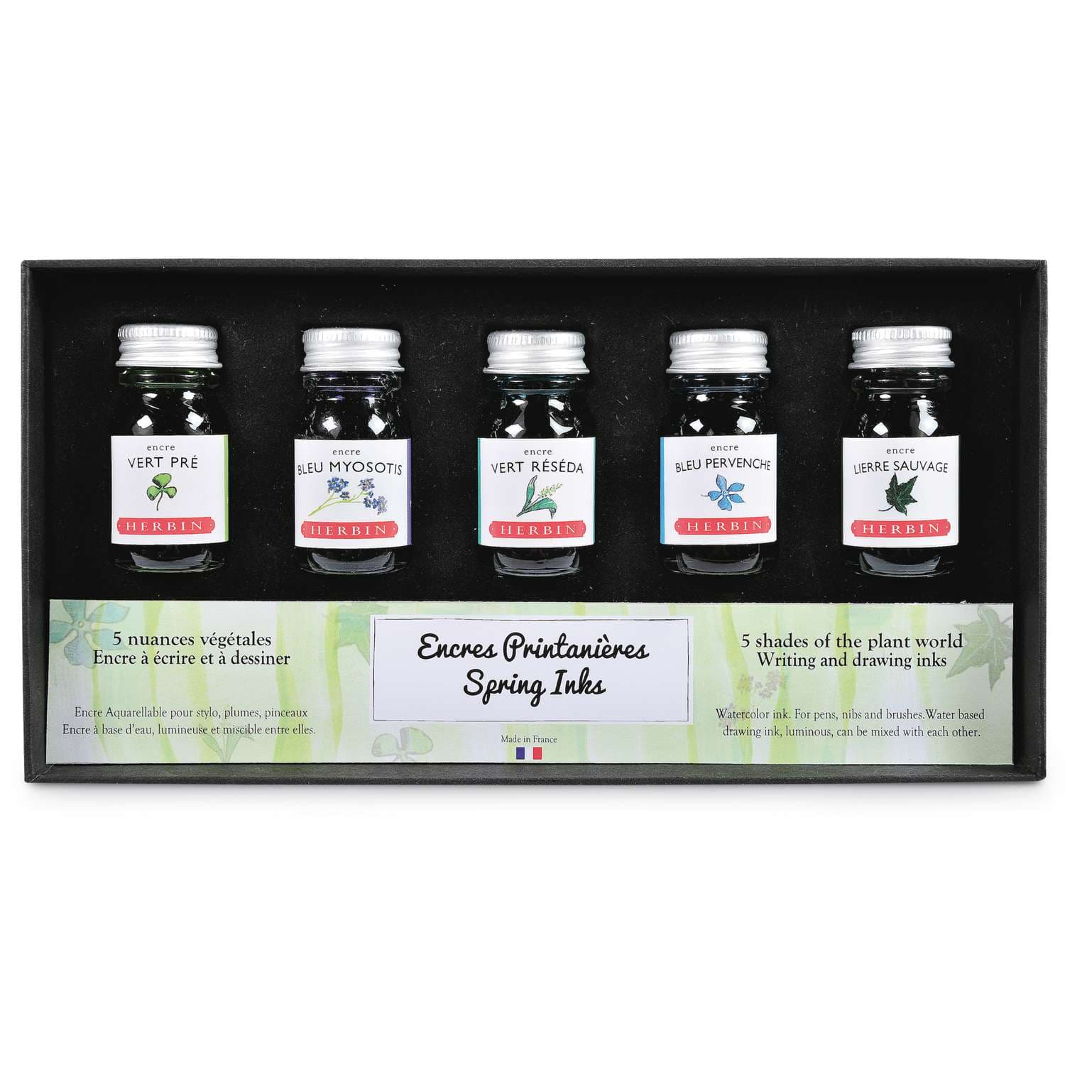 Das HERBIN Kalligraphie- und Zeichentusche „Frühling“-Set enthält folgende Farbtöne