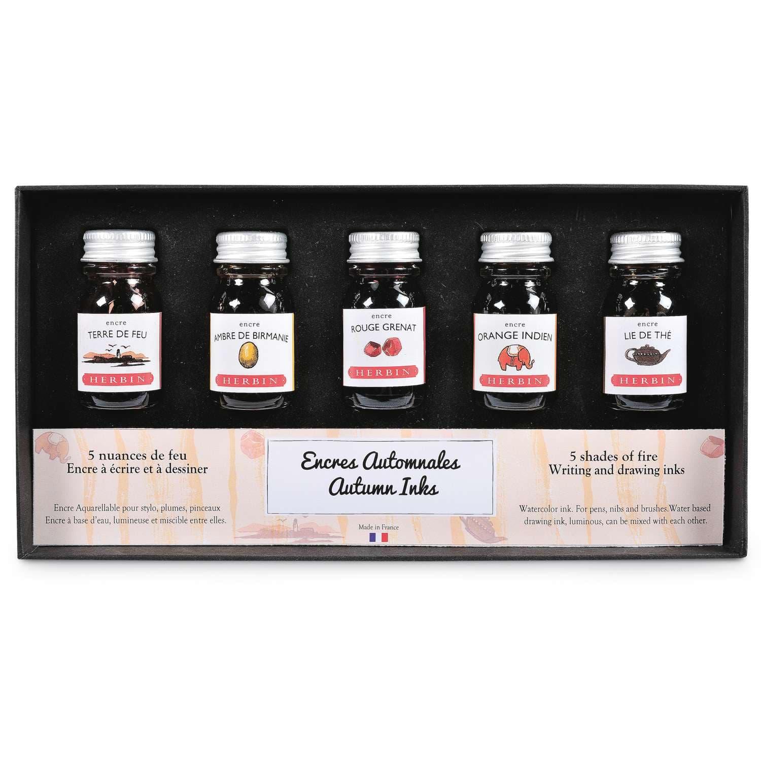 Das HERBIN Kalligraphie- und Zeichentusche „Herbst“-Set enthält folgende Farbtöne