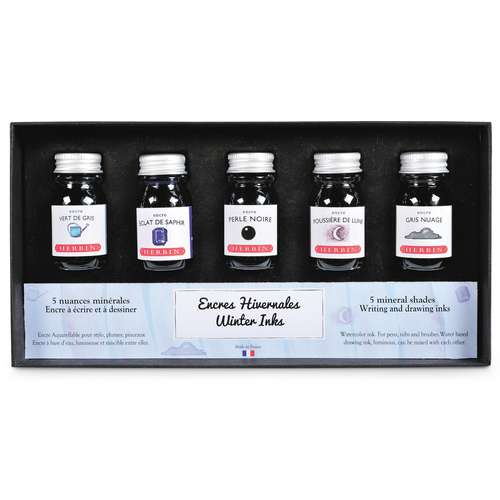 Das HERBIN Kalligraphie- und Zeichentusche „Winter“-Set enthält folgende Farbtöne