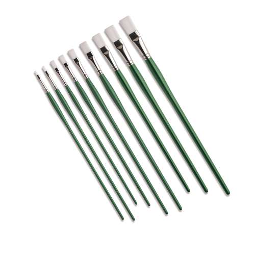 Hochwertiger, flacher Acrylpinsel mit feinen, geschwungenen Kunstfasern für eine besonders präzise und gleichmäßige Linienführung. Ideal für das Malen an der Staffelei.