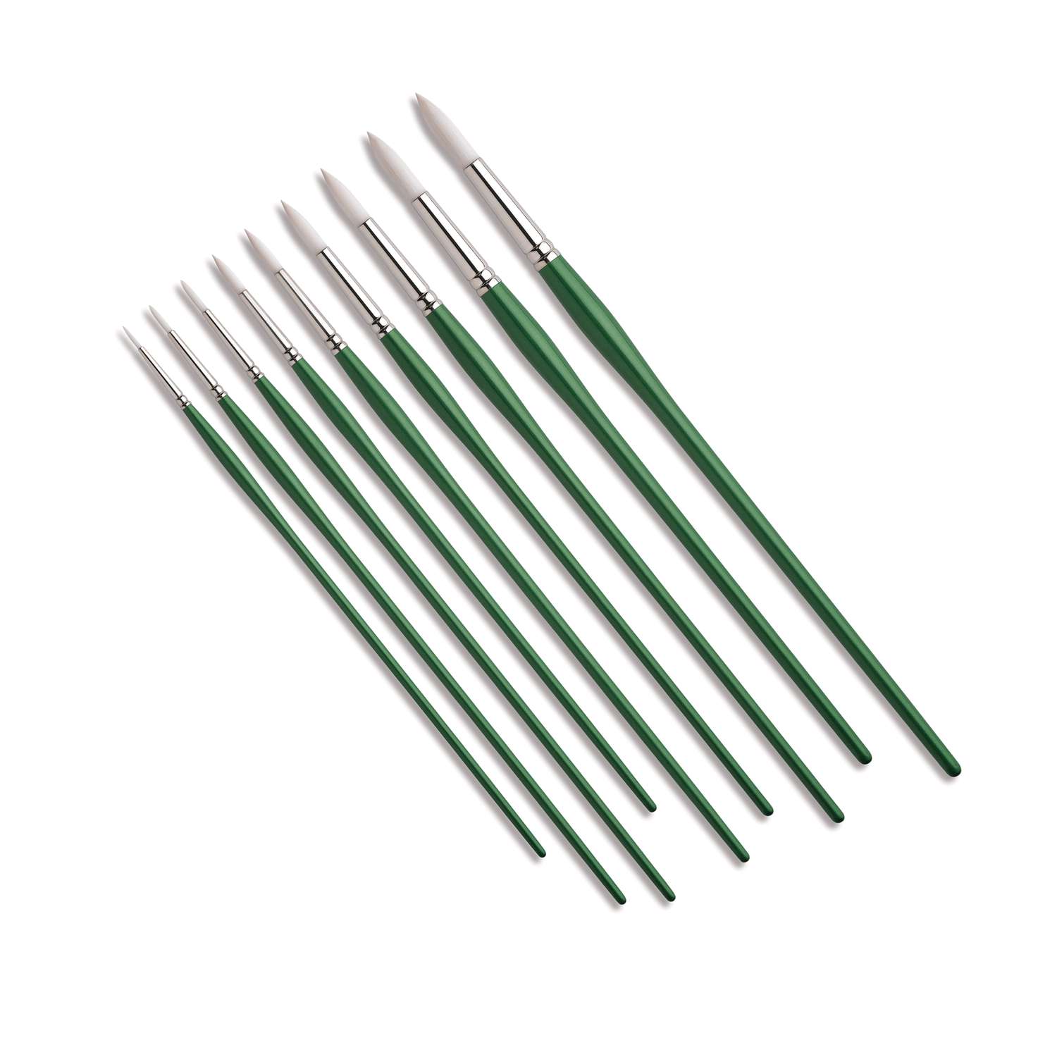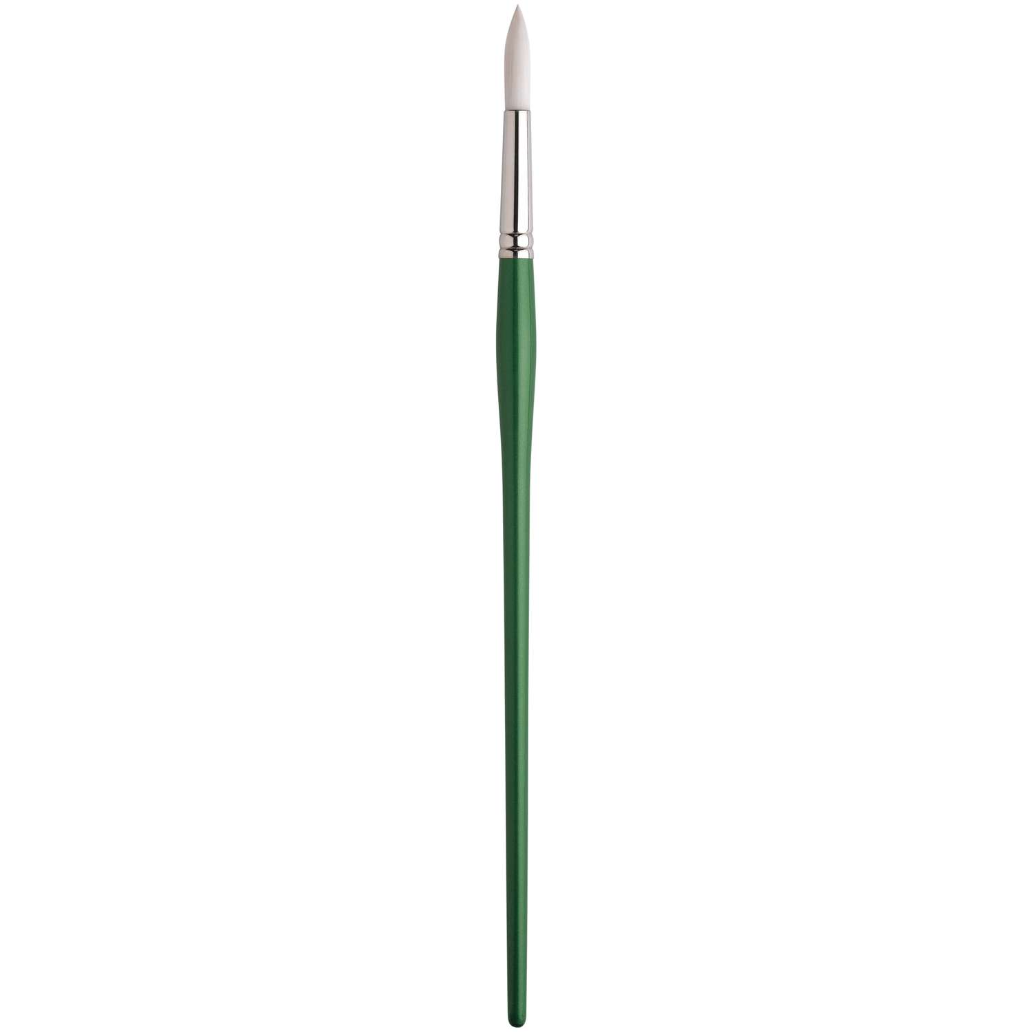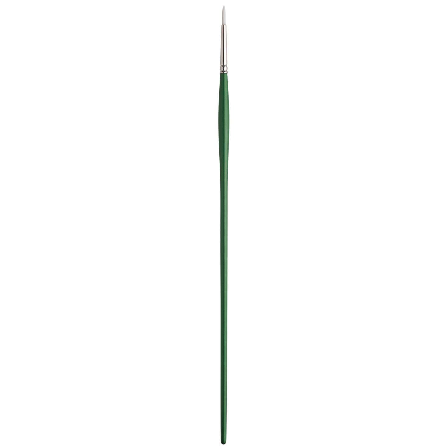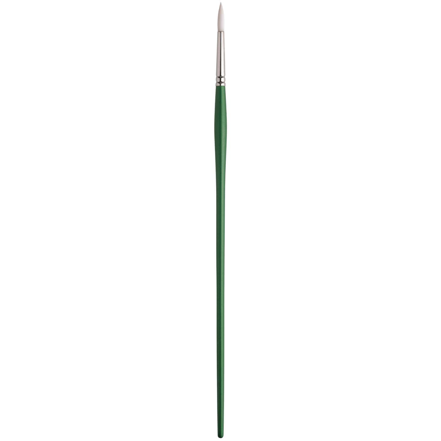 Hochwertiger, runder Acrylpinsel mit feinen, geschwungenen Kunstfasern für eine besonders präzise und gleichmäßige Linienführung. Ideal für das Malen an der Staffelei.