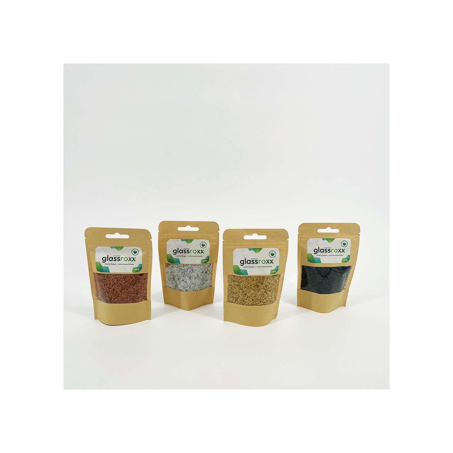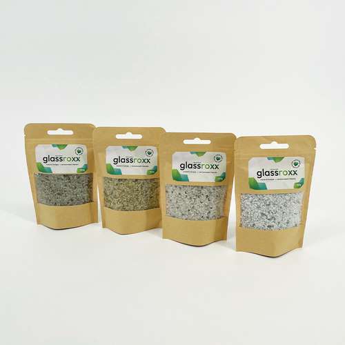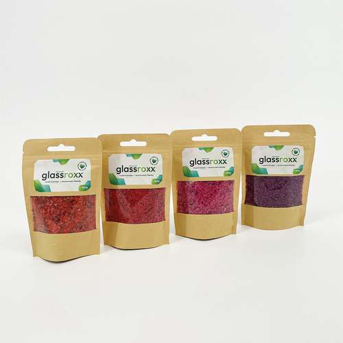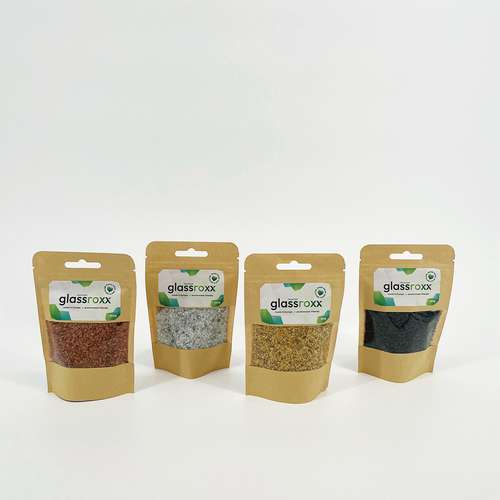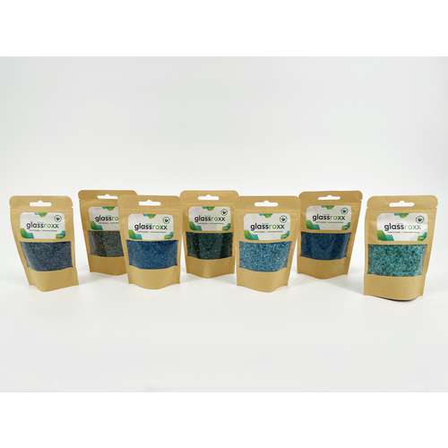 Mit GlassRoxx verleihen Sie Ihren Projekten Glanz und Eleganz. Das umweltfreundliche Glasgranulat ist die nachhaltige Wahl für stilvolle und kreative Designs!