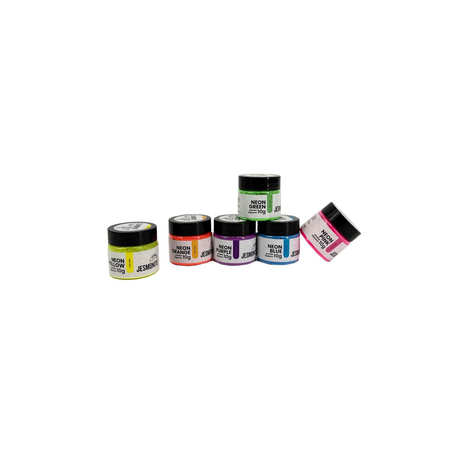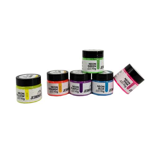 Verleihen Sie Ihren Kunstharzprojekten strahlende Farbintensität mit dem JESMONITE® Neon Pigment Set. Das Set enthält 6 Fläschchen à 10 ml in leuchtstarken Neonfarben auf Wasserbasis, die speziell für die Anwendung mit JESMONITE®-Medien entwickelt wurden.