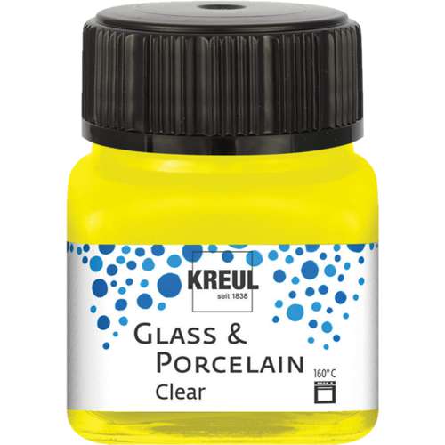Die KREUL Glass & Porcelain Clear Farbe ist ein transparentes Dekorationsmedium für Glas, Porzellan, Keramik und glasierte Oberflächen. Die Farbe ist wasserbasiert und ergibt nach dem Einbrennen eine glänzende Glasur mit klarer Farbwiedergabe. Sie lässt sich gleichmäßig auftragen und eignet sich ideal für Akzente, Ornamente oder vollflächige Designs. Die Farben sind spülmaschinenbeständig und haften dauerhaft auf glatten Oberflächen. Sie sind in verschiedenen Farbtönen erhältlich und dienen kreativen Projekten mit leuchtender Glasmaloptik.