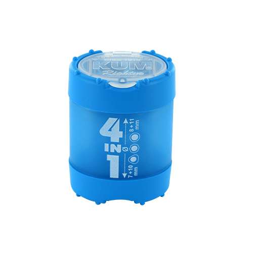 Der KUM® Behälterspitzer 4-in-1 ist für fast alle gängigen Bleistifte und Buntstifte mit Durchmessern von 7, 8, 10 oder 11 mm geeignet.