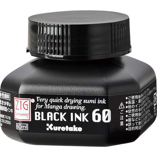 Die Tinte eignet sich für Inking, Manga-Zeichnungen, technische Skizzen und klassische Illustrationsarbeiten. Sie wird in einer 60-ml-Flasche geliefert.
