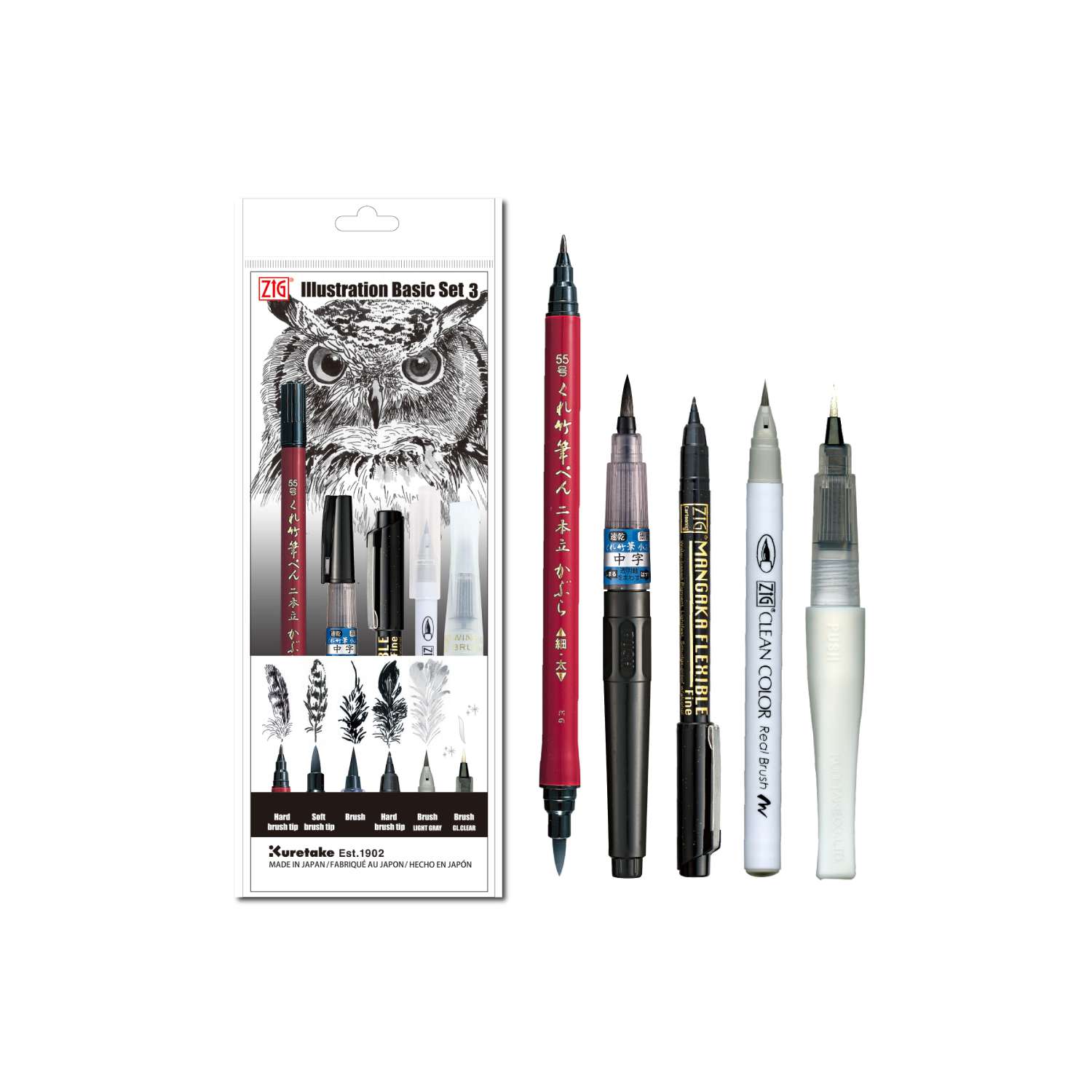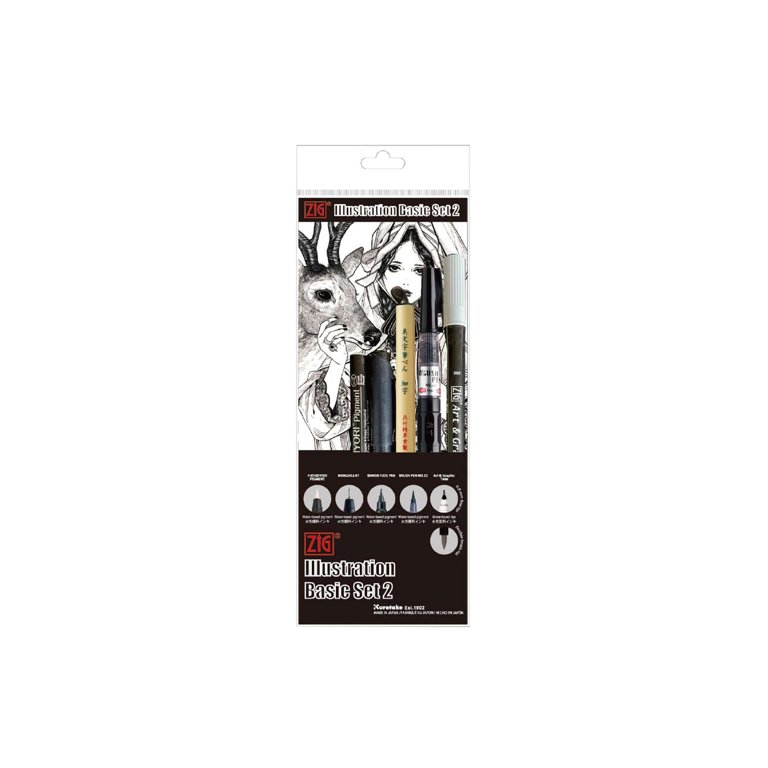Die Kuretake ZIG® Illustration Basis Sets sind 5-teilige Einsteiger- und Grundausstattungen für Illustration, Zeichnung und Skizze. Die Sets wurden entwickelt, um einen strukturierten Einstieg in das Arbeiten mit verschiedenen ZIG-Illustrationswerkzeugen zu ermöglichen.