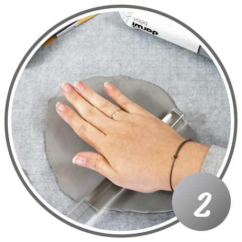 Mit dem Acrylroller wird die Knete flach ausgerollt, bis sie die gewünschte Grösse erreicht hat.