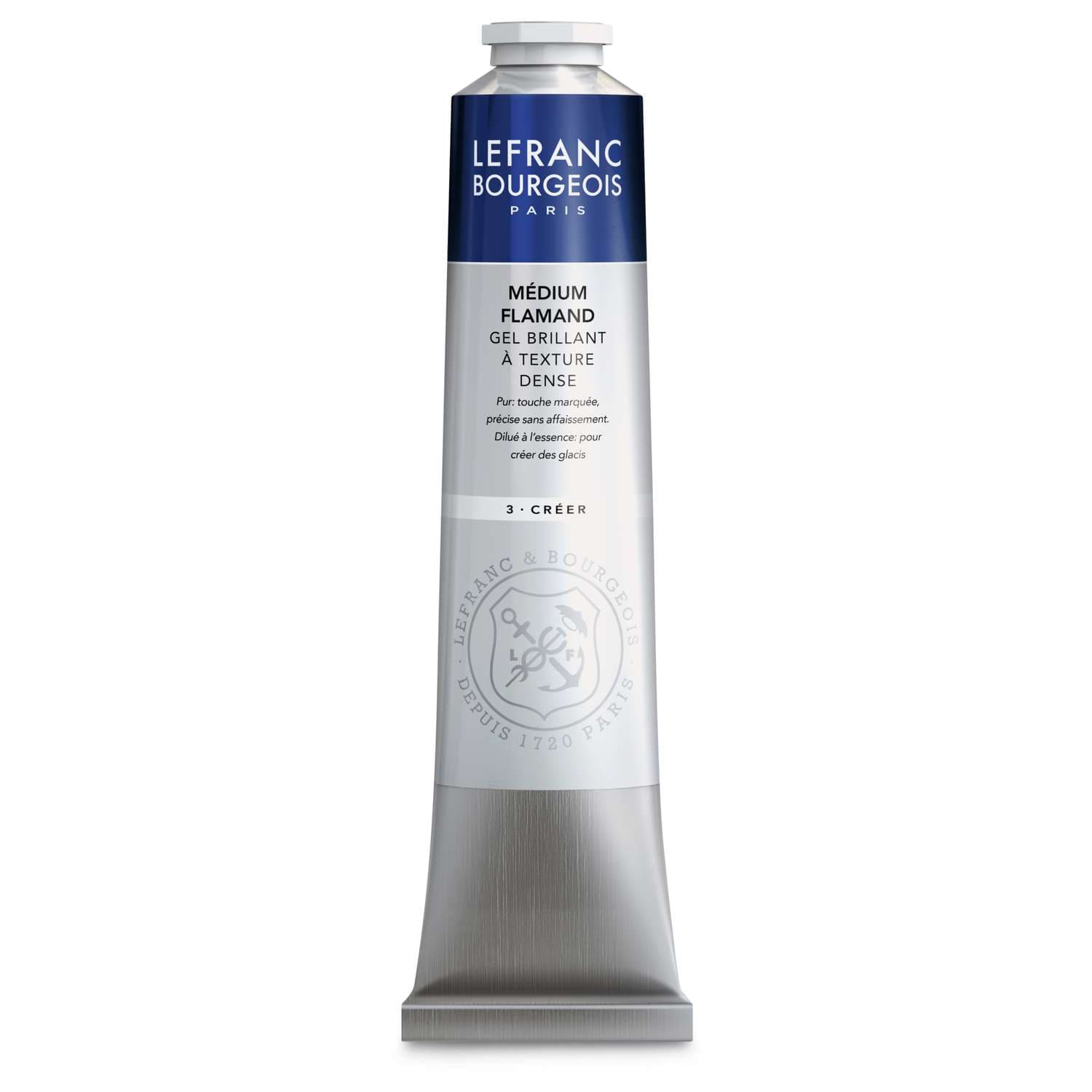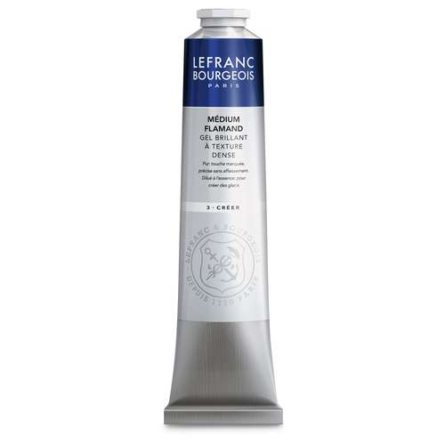 LEFRANC & BOURGEOIS Flämisches Malmittel für zügigeres trocknen der Farbe. Es trocknet schnell (2 bis 3 Stunden) und glänzend auf. Kein Schlussfirnis erforderlich. Bleifrei. Erhältlich in 60-ml- und 150-ml-Tuben.