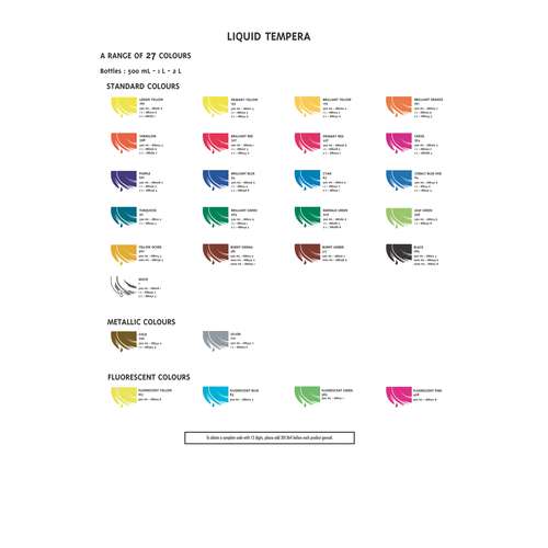Temperafarbe aus dem Hause Lefranc & Bourgeois. Eine ausgezeichnete, seit Jahren bewährte Schultemperafarbe mit hervorragenden Maleigenschaften. Herausragendes Merkmal ist das überzeugende Preis-/Leistungsverhältnis. Selbstverständlich entspricht diese Farbe der Norm EN 71. Ideal für das großflächige Malen in Schule und Therapie. LEFRANC & BOURGEOIS Gouache liquide Redimix, gibt es in rationellen 500-ml und 1-Liter-Kunststoffflaschen, sowie in 2-Liter-Kunststoffflaschen lieferbar.