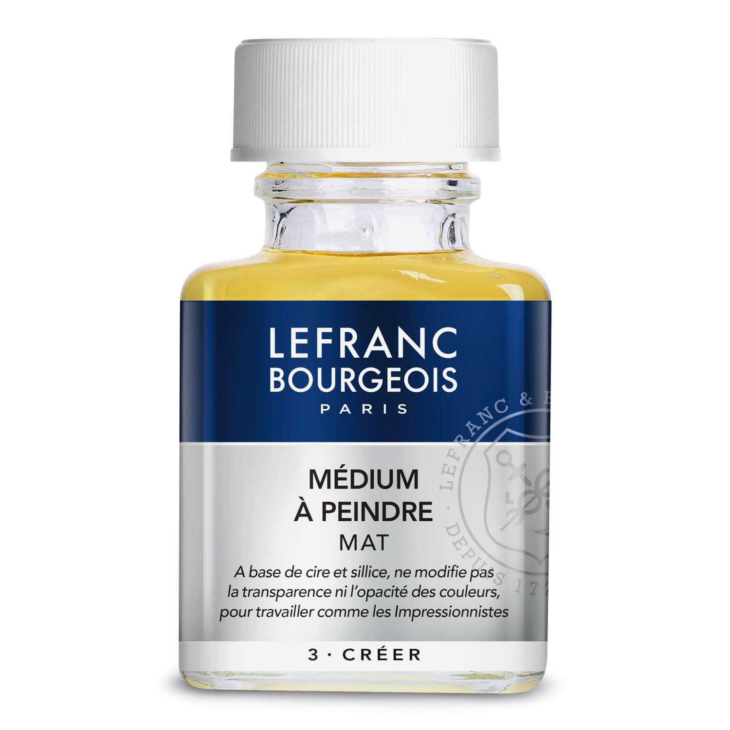 Aus dem Hause Lefranc&Bourgeois. Für Arbeiten in Schichten oder zum Erzeugen von Lasuren. Verleiht dem Bild Farbtiefe und Leuchtkraft. Verfestigt sich relativ schnell und trocknet anschließend langsam matt auf. In 75ml und 250ml erhältlich. Preise pro Flasche.