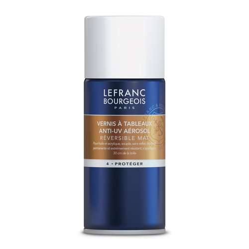 Der extrafeine LEFRANC & BOURGEOIS Schlussfirnis, matt bildet einen dauerhaft weichen Film, verfärbt nicht und ist sehr resistent gegen blaue Schleierbildung, Feuchtigkeit und weißen Schimmel. Ergibt eine gleichmäßige matte Oberfläche. Für Öl- und Acrylfarben. Lieferbar als 150-ml- und 400-ml-Sprühdose.