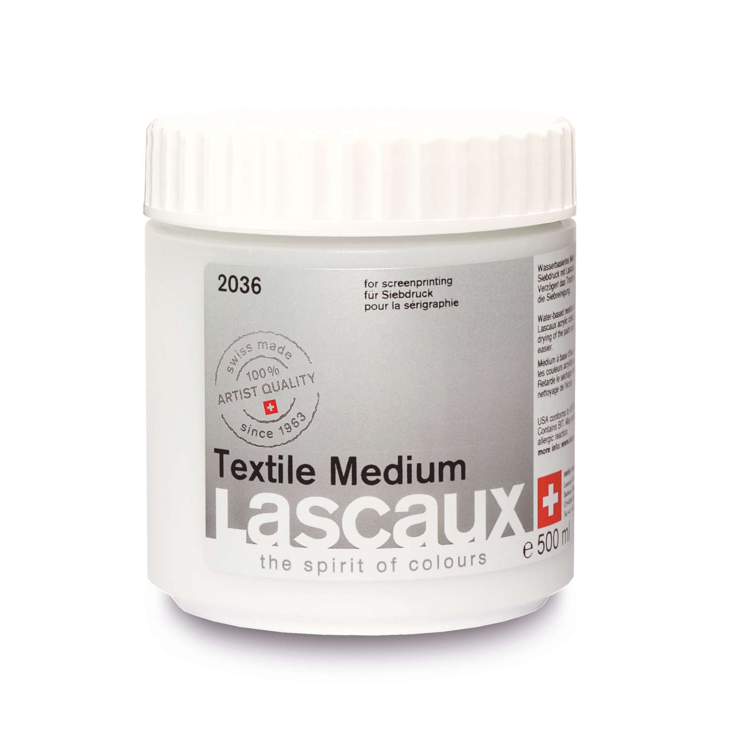 Das Medium wird im Verhältnis 3:1 mit Lascaux Farben gemischt und ergibt ein ungiftiges, wasserbasiertes System für den Textil- und Siebdruck – ideal für den Heimgebrauch oder das Atelier. Es sorgt für die optimale Konsistenz der Farben, verlängert die Offenzeit und beeinflusst weder Farbintensität noch Lichtechtheit.